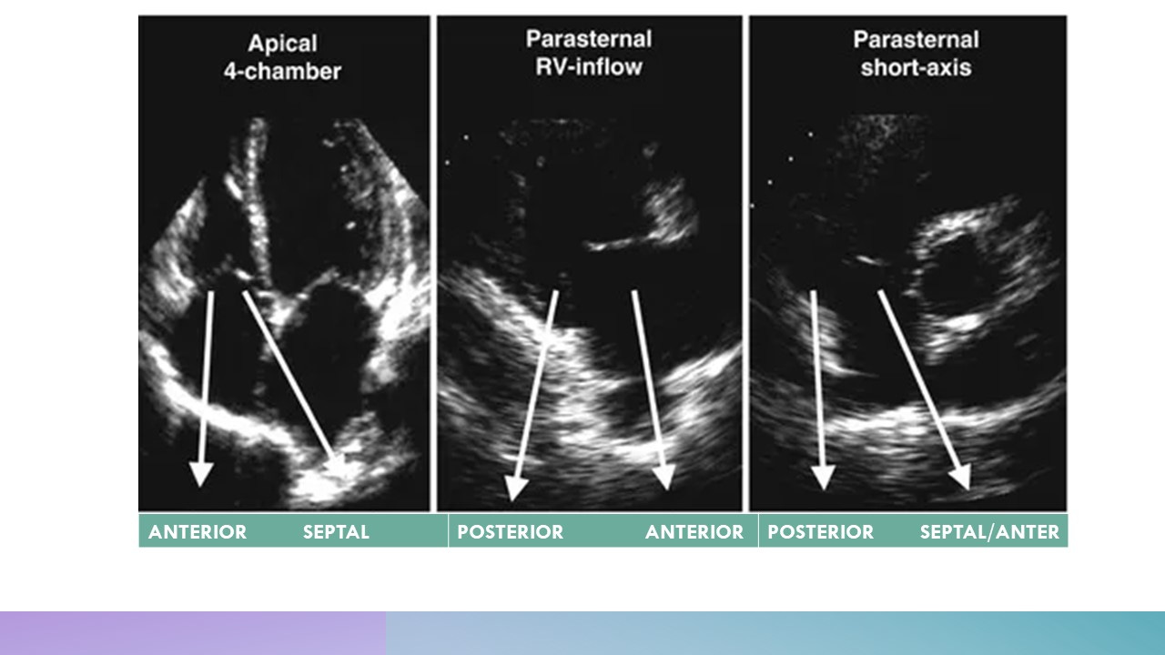Ebstein’s anomaly is a rare condition that can present at any age. The severity of Ebstein’s anomaly directly correlates with the age of presentation, starting in fetal life to adulthood. The spectrum of this condition results in a variety of presentations from asymptomatic to severe cyanosis or life-threatening. We will go through recognition and diagnosis of this condition in apical views.