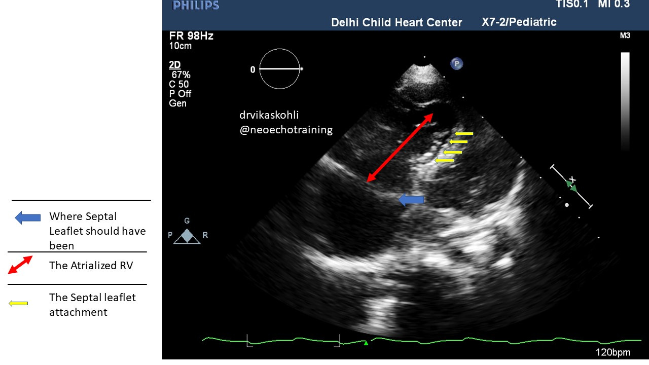 The RV from the true tricuspid attachment to the new septal leaflet attachment is referred to as Atrialized RV.